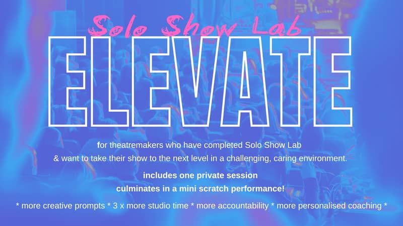 This course is only open to people who have participated in the first Solo Show Lab or have developed work with me before. You can take this September’s Solo Lab and continue straight on to ELEVATE if spaces are available.